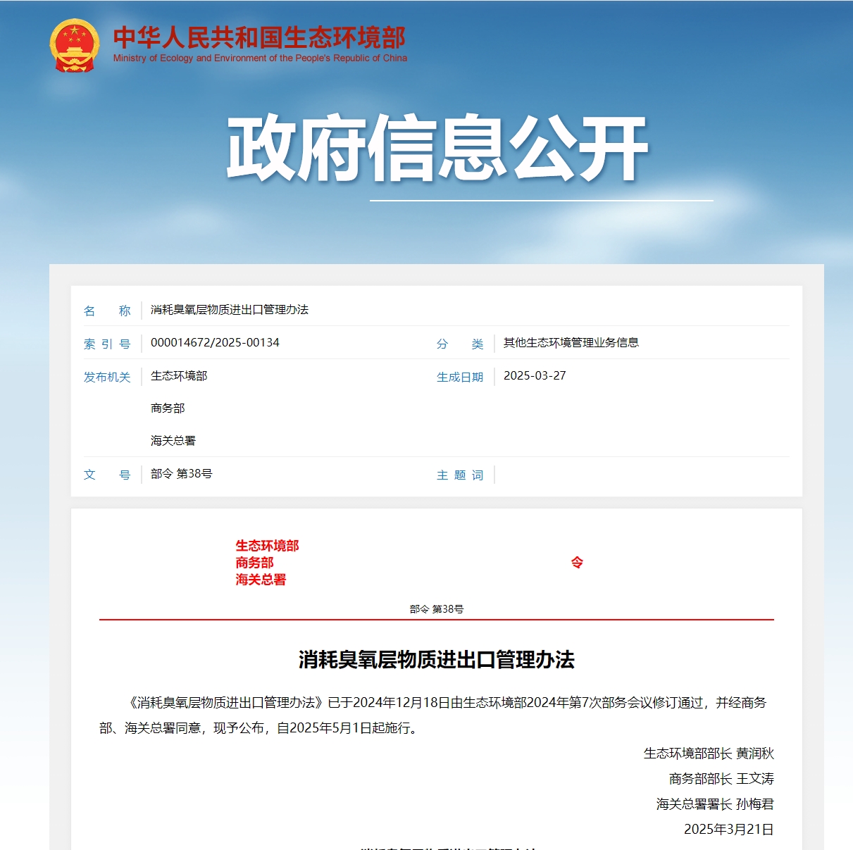 第二十三条 本办法自2025年5月1日起施行。《消耗臭氧层物质进出口管理办法》(环境保护部、商务部、海关总署令第26号)同时废止。