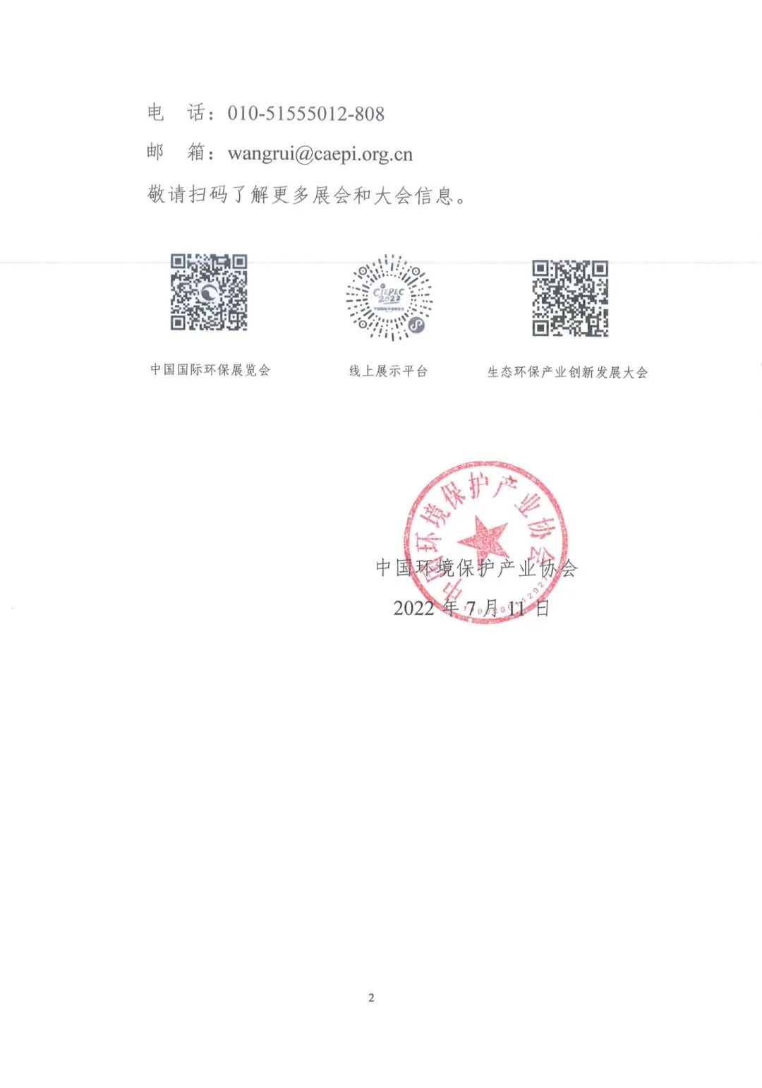关于第二十届中国国际环保展览会和2022生态环保产业创新发展大会举办时间的通知