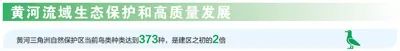 深入实施黄河流域生态保护和高质量发展战略。山东首部黄河保护地方性法规已施行;黄河三角洲国家级自然保护区当前鸟类种类达到373种,累计修复湿地面积超过30万亩。