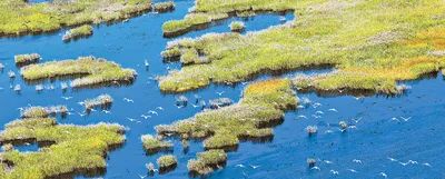 黄河三角洲国家级自然保护区群鸟翱翔,生机勃勃。近年来,黄河三角洲持续推动生态保护与修复,生态环境不断改善。