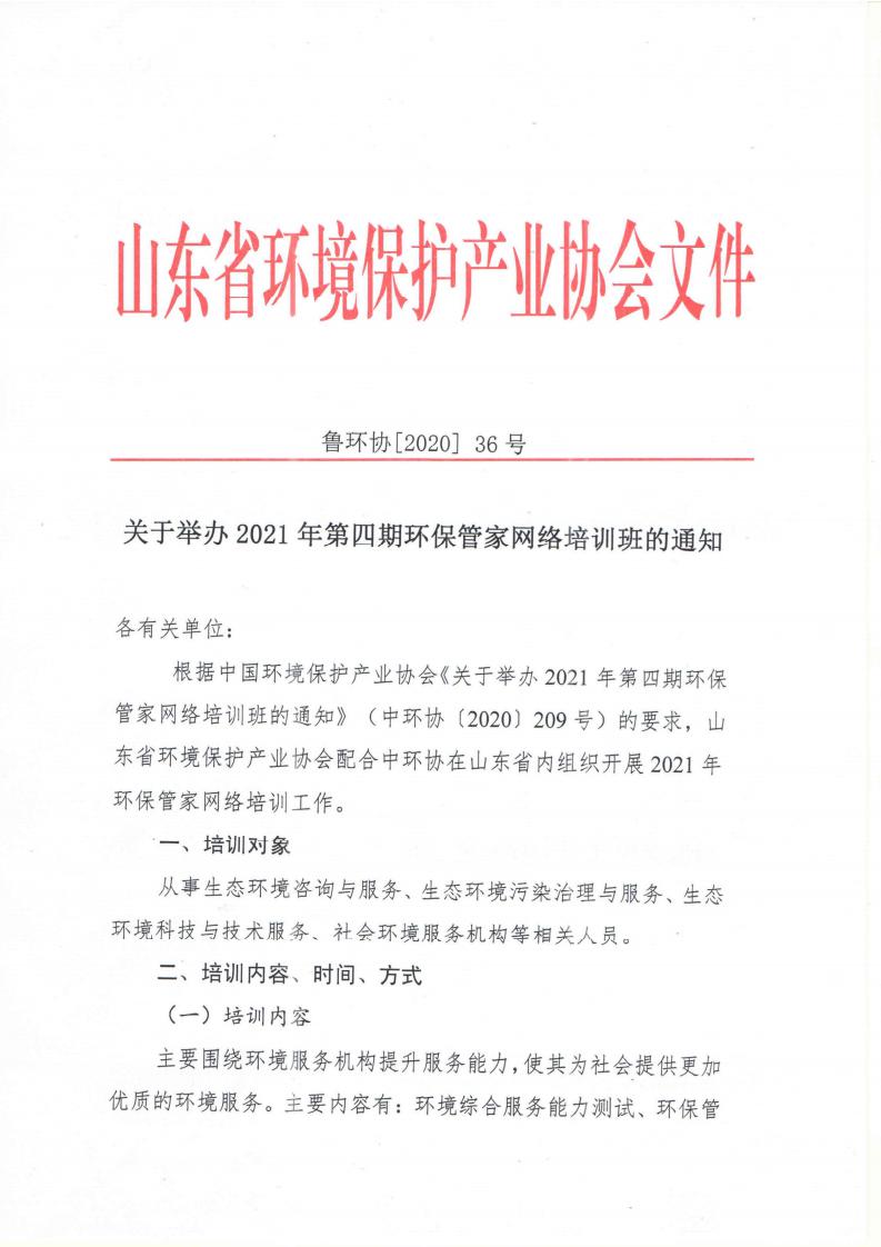 关于举办2021年第四期环保管家网络培训班的通知 -下载凯发k8