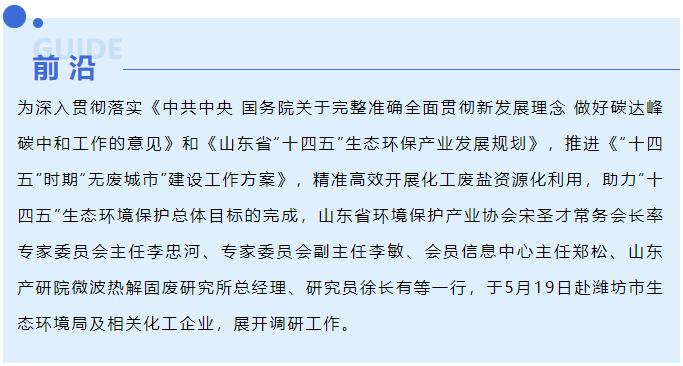 调研组指出,《山东省“十四五”生态环保产业发展规划》中提到:实施重点生态环保产业补链强链延链工程,发展化工行业污染防治产业链、工业废盐等综合利用产业链,这对于企业是一个良好的发展机遇。希望企业与协会加强交流沟通,利用协会平台优势,在工业废盐的综合利用、新化学物质登记等方面为企业助力。