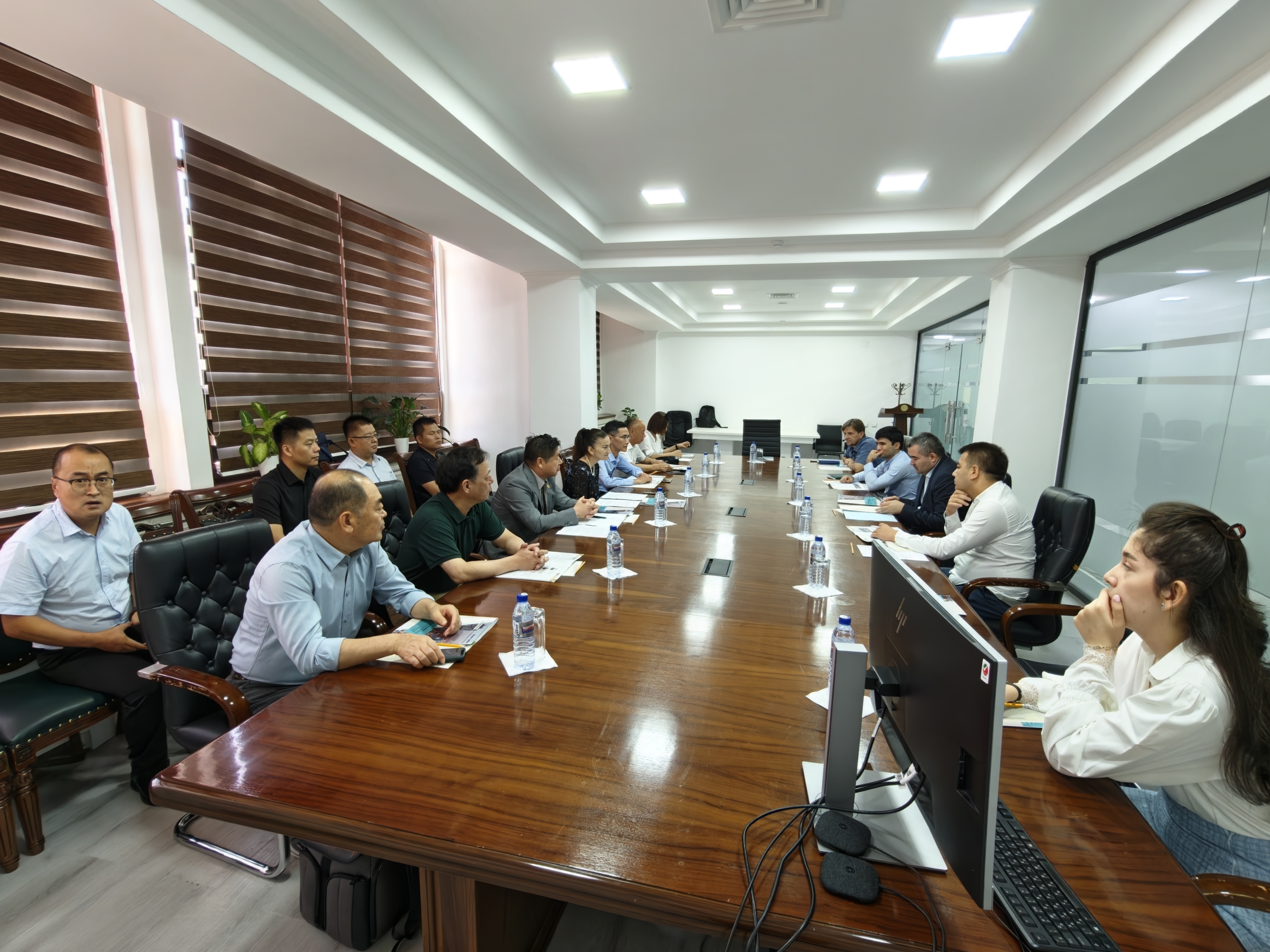 8月12日绿色低碳环保产业考察交流团赴乌兹别克斯坦生态环境部座谈交流,就绿色低碳技术合作、环保产业协同发展等议题展开深入交流。乌兹别克斯坦生态环境部循环经济署署长哈萨诺夫、水资源处处长伊尔霍姆·朱拉耶夫、投资处处长诺迪尔·里赫西耶夫、专家评审中心副主任提穆尔·艾特马拉托夫等出席座谈交流。